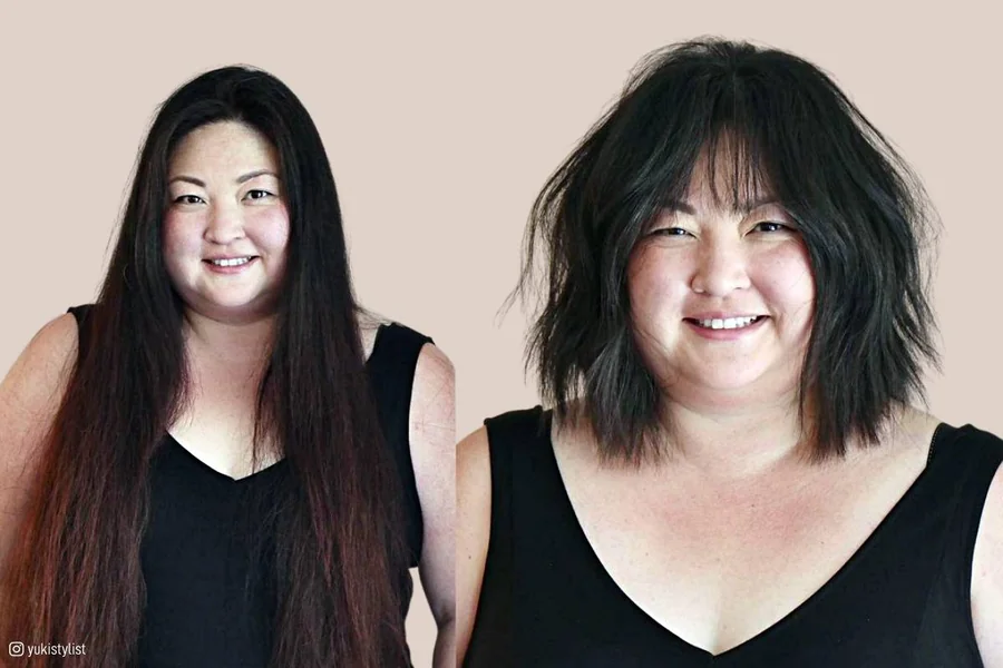 In the case of the plus size women, the hair will not stick flat to the cheeks because of shaggy cuts. The layers instead generate space and movement. This is an airy effect that is going to balance broader facial features.